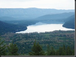 This is a view of Lake Wenatchee from a view point high above.